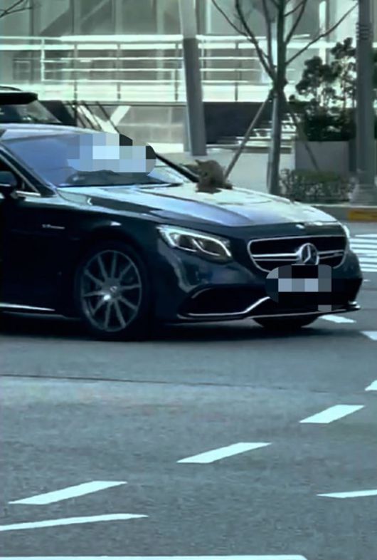 보닛 위에 고양이를 올리고 달리는 벤츠를 본 시민이 ‘동물 학대’라며 경찰에 신고하자 경찰이 수사에 나섰다.