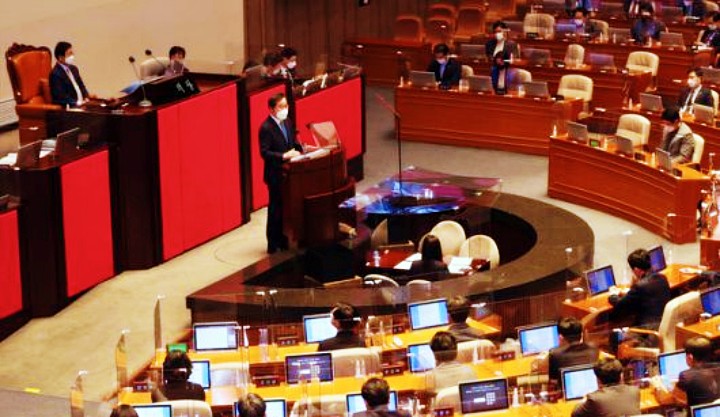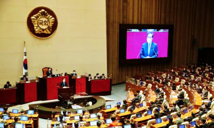 아울러 조 바이든 미국 대통령 취임을 언급하며 "한·미동맹은 '바이든 시대'에 더욱 미래지향적으로 발전해야 하고, 발전할 것"이라고 강조했다. 북한을 향해선 "언제 어디서든 만나자는 우리 정부의 제안에 북한이 호응할 때"라며 "판문점 선언의 국회 비준 동의를 재추진해 남북 화해의 동력을 확보하겠다"고 했다.