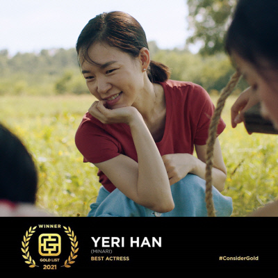 배우 한예리가 영화 ‘미나리’로 첫 여우주연상을 수상했다.  28일 ‘미나리’의 국내 배급사인 판 씨네마는 한예리가 골드 리스트 시상식에서 여우주연상을 수상했다고 밝혔다. 특히 ‘미나리’는 한예리의 여우주연상 외에도 작품상, 감독상, 각본상, 남우주연상, 여우조연상, 남우조연상 등을 수상하며 7관왕을 달성한 것.  <미나리>는 여우주연상 외에도 작품상, 감독상, 각본상, 남우주연상(스티븐 연), 여우조연상(윤여정), 남우조연상(앨런 김) 등을 수상하며 7관왕을 달성했다
